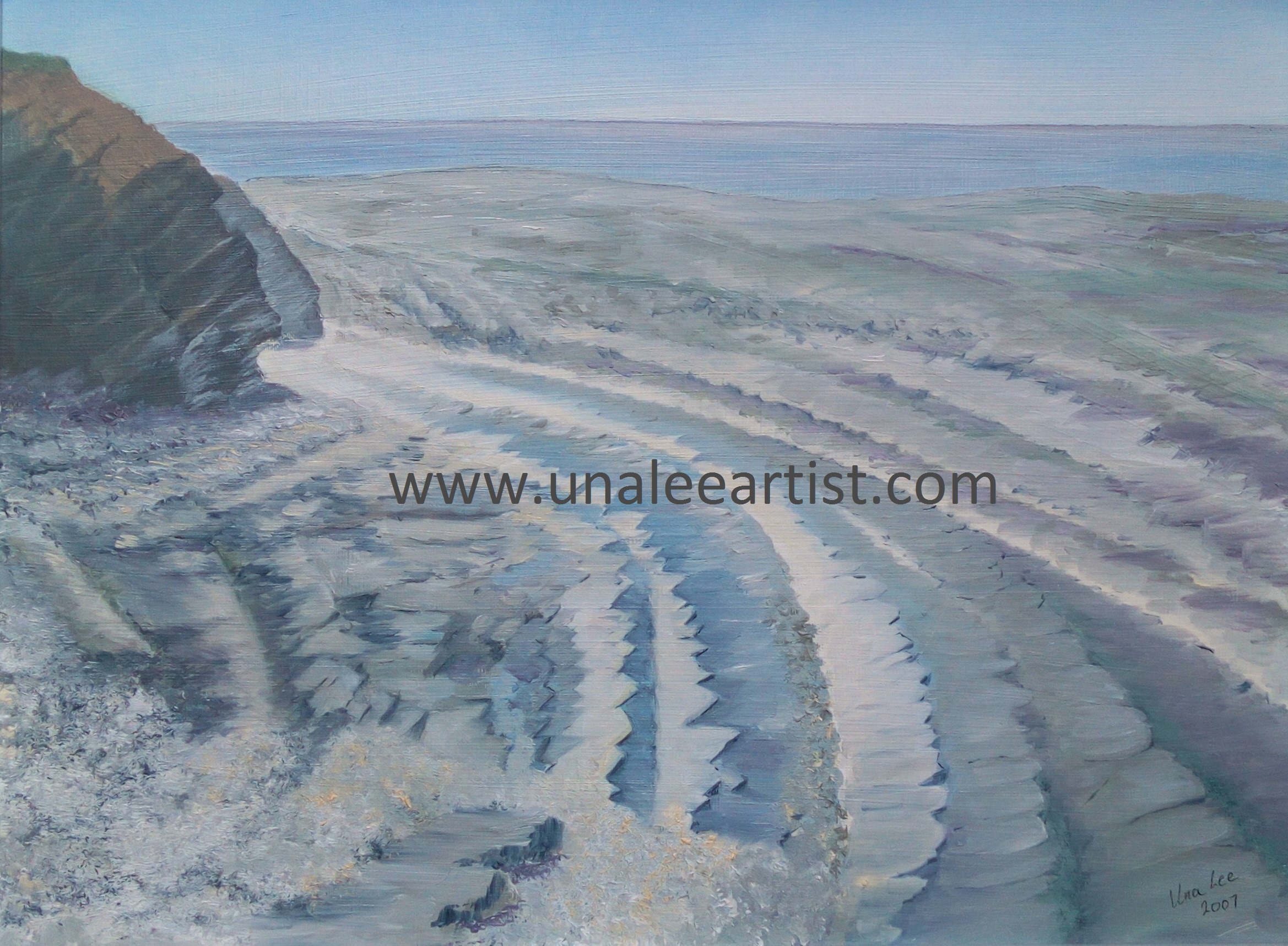 Previous Image Next Image The Dragons back Kilve beach Somerset watermark Acrylic Painting. Framed. Size: 48cm x 38cm.